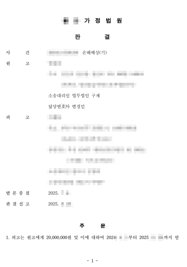 법원은 상간남의 부정행위를 명확히 인정하여, 상대방에게 위자료 2,000만 원을 지급하라는 판결을 선고하였습니다. 본 판결을 통해 혼인관계가 유지되고 있었음에도 불구하고 이루어진 부정행위에 대한 법적 책임이 분명히 확인되었으며, 의뢰인은 이번 소송을 통해 정신적 고통을 금전적으로나마 배상을 받음으로써 일정 부분 위로를 받을 수 있었습니다.