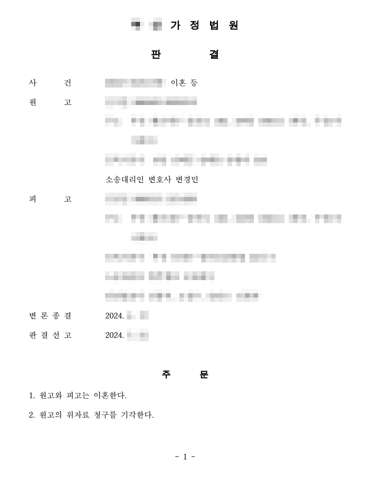 | 다음글 | 외도 남편으로부터 경제·정서적 회복을 이끌어낸 승소사례 | 2025-12-12 |