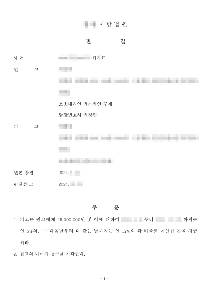 법원은 피고의 부정행위를 인정하여 2,500만 원의 위자료 지급을 명령하였습니다. 반복된 관계와 반성 없는 태도가 위자료 산정에 반영되었습니다. 의뢰인은 가정을 지킬 기회를 확보함과 동시에, 정신적 고통에 대한 법적 책임을 분명히 인정받는 결과를 얻었습니다.