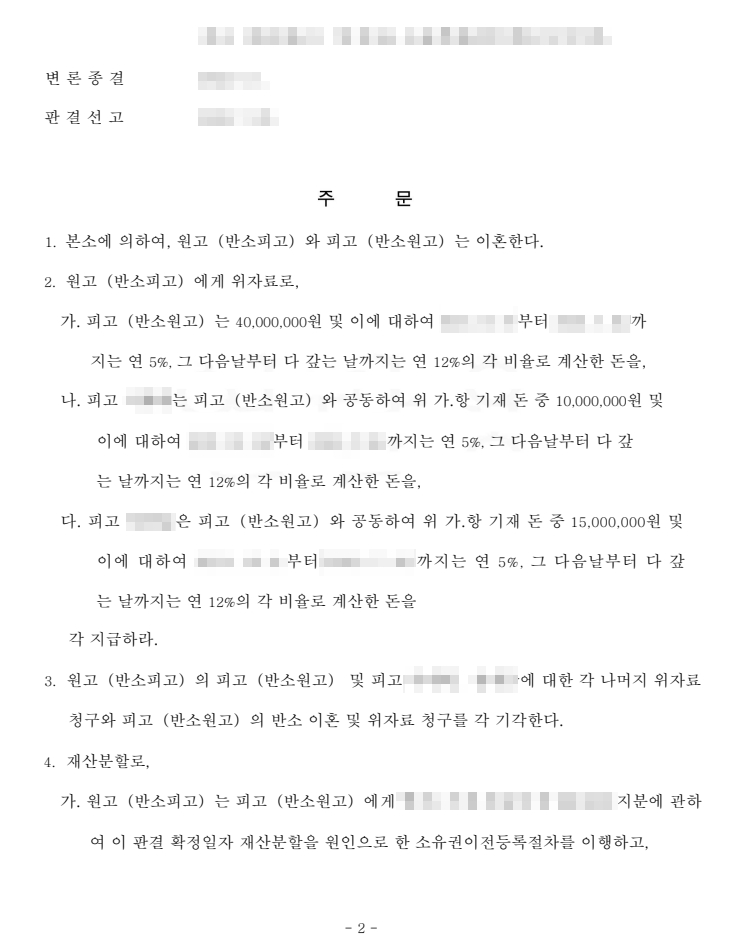 법원은 혼인관계 파탄의 근본적이고 주된 책임이 전남편에게 있음을 판결문으로 명확히 인정하였습니다. 또한 상간자들의 책임 역시 받아들여져, 의뢰인은 정신적 고통에 대한 위자료 4,000만 원을 인정받으며 금전적으로나마 위로를 받을 수 있는 유리한 판결을 받았습니다.