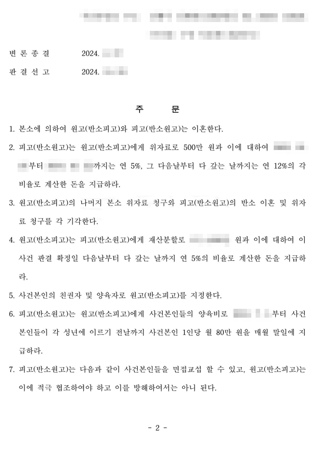 법원은 남편의 폭력적 행위를 혼인관계 파탄의 주요 원인으로 인정하였습니다. 그 결과 의뢰인은 안전하게 이혼에 이르렀고, 자녀들의 양육권 또한 지켜낼 수 있었습니다.