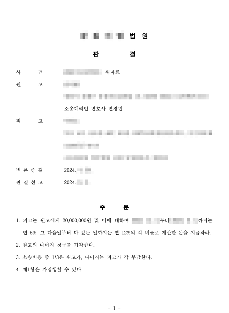 법원은 피고의 부정행위를 인정하여 위자료 2,000만 원 지급 판결을 내렸습니다. 단순한 직장 동료일 뿐 불륜은 아니라는 피고의 주장은 받아들여지지 않았고, 의뢰인은 금전적인 보상을 통해서나마 깊은 정신적 상처를 위로받을 수 있었습니다.
