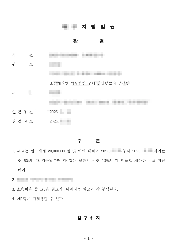 법원은 피고는 원고에게 위자료 2000만 원 및 지연손해금을 지급할 의무가 있다고 판결했으며 피고의 책임을 명확히 인정하여 우리 의뢰인에게 유리하게 승소 판결하였습니다.