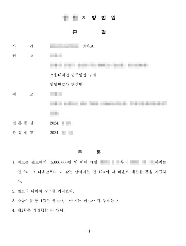 법원은 사실혼 관계 역시 법적으로 보호받아야 할 관계라는 점을 인정했습니다. 상간녀의 행위가 의뢰인에게 정신적 고통을 준 불법행위에 해당한다고 판단했습니다. 그 결과 상간녀는 의뢰인에게 위자료 1,500만 원을 지급하라는 판결을 받게 되었고, 의뢰인은 금전적으로나마 정신적 고통에 대한 위로를 받을 수 있었습니다.