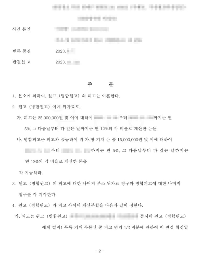 아울러 남편과 상간녀의 부정행위로 인한 정신적 고통에 대해서도 위자료를 인정받아, 법적으로나마 정당한 위로를 받을 수 있었습니다.